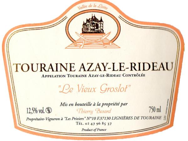 Issu des plus vieilles vignes du cépage grolleau(ou groslot)il est sec tendre et fruité . A servir frais plus particulièrement avec les charcuteries, salades ou à toute heure de la journée avec ou sans accompagnement ainsi que l'apéritif.